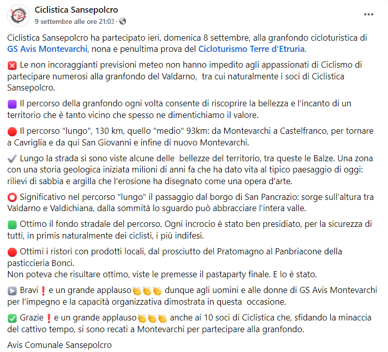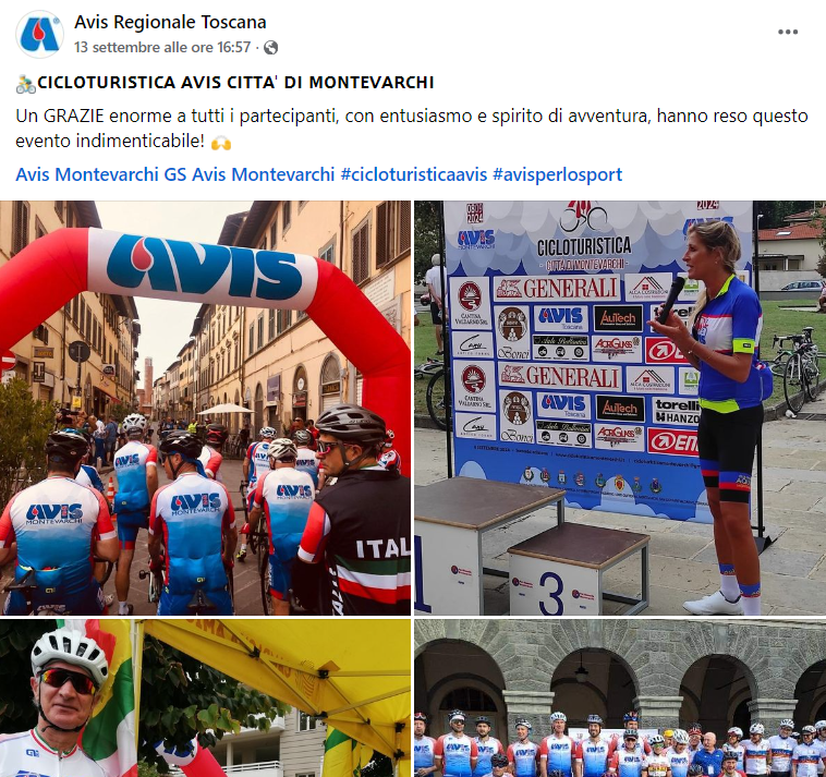 Desideriamo ringraziare calorosamente tutti coloro che hanno preso parte alla Cicloturistica Avis Città di Montevarchi.